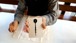 The magician removes a card from his pocket, with a drawing of a dart on it. With a quick snap, the dart disappears and, in its place, is a hole in the shape of the missing dart. Where has it gone?