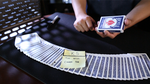 The Post-it Note is stuck on the card box. The deck is removed from the box. You claim that they will select the exact card that is written on the Post-it Note.