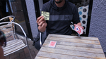 The Post-it Note with the WRONG CARD written on it is peeled from the box. The magician slowly waves the Post-it Note over their selection.