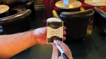 Take the open case in the left hand. The cards are plainly visible inside the case. Gently shake the case to position the card (you say). The spectator himself can also shake the case with the cards inside. Take the plastic card and slide it under the cellophane or simply hold it against the case.