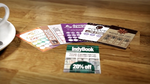 The key to any invisible prop is to make it appear like the genuine article. For this reason, the Cool Beans cards have been printed using different card stock and styles, as you would expect to get from five unconnected coffee establishments. Each card has been hand stamped with a customized stamp for each card, adding to the apparent authenticity of them.