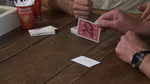 Remove the cards from the box and spread through them. Your spectator will see all different numbers on the backs of the cards. Turn over the Queen of Spades and it actually has the same number written on the paper or business card.