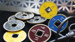 This is a beautiful set of Chinese coins in one-dollar size. It includes 9 different coins: one expanded steel shell, 4 blacks coins, one red coin, one blue coin, one yellow coin, one double-side yellow and blue coin, and one special purse. Marcel, a close-up expert Argentinean magician, created many amazing routines with this set. These are included in the video instructions.