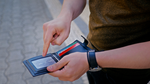Your spectator freely names any value, from Ace to King. You remove a set of cards from your wallet, which holds not only the cards but also your cash and bank cards, enhancing its authentic look. Then, the spectator is asked to select a color, and then a suit. As the cards are spread in your hands, the spectator's chosen card is the only one face-up among the others. But the astonishment doesn't end there: it's the only card with a red back, while the others have blue backs, and they are blank on the face: these cards were never real!