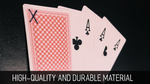 The size of the cards was designed so that both can be used use close-up magicians like magicians who do parlor magic since the cards can be seen very well from a distance. The cards are made of excellent super durable and washable material that allows you to mark the cards on the back with an ink marker and then erase them easily so you can perform the routine again as many times as necessary.