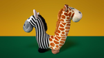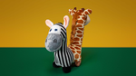 Then, two cards are chosen in the hopes that they match perfectly... but one card is show to be a giraffe and the other one is shown to be a zebra. But wait! Your prediction... is a two-headed stuffed animal with one head of a zebra and one head of a giraffe... PERFECT! For the hilarious ending, you then remove a second prediction: the butts of both animals!