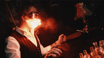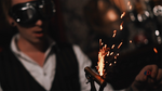 2. The magician lights the wick and ignites the mechanism.