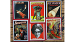 Next, five gorgeous full color mini-postcards are shown, each featuring a classic magician poster. They are all placed into regular envelopes, which are handed to another spectator. They shuffle and freely choose any one of them.
