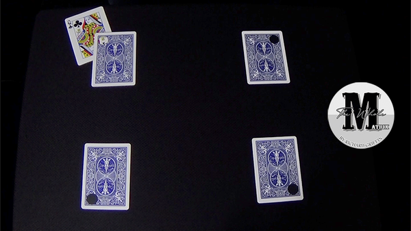 Four cards are shown each with a hole in. Just by waving your hands over the cards youcan make the holes jump until they all end up on one playing card which you can show tohave all four holes in.