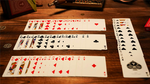 The sequence builds further as he produces additional Spade court and value cards: 10, J, Q, and K. Then, in a flash, the remaining Spades from 2 through 7 appear as well.