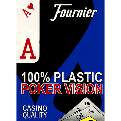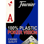 Fournier of Spain supplies playing cards to leading European casinos and now their exquisite 100% plastic playing cards are available to home players. The Vision is a poker-size, peek index deck with a mesmerizing back design in blue - great for Texas Hold'em. The unique "peek" or "dual" index is similar to the style used in the 2007 World Series of Poker - great for Texas Hold'em. This deck is packaged in a cardboard tuckbox with the new holographic security seal. Each deck is made from the same proprietary materials and undergoes the same rigorous quality control procedures as those used for high-end casino customers. Each deck includes 52 cards, two jokers, and a courtesy card. Made in Spain, these cards are top of the line and will impress serious card players.