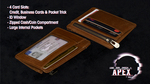 SWITCHÂ - Boasting TWO switching compartments, the Apex wallet allows for incredible visual switches of FULL SIZE playing cards, cash, coins, receipts, or any similarly sized large items. Combine this switch function with a card-load and the possibilities are limitless: blank card to signed card... torn and restored... the list goes on. And the best bit? The main switcher section is auto-magnetic-locking which means spectators can open the wallet themselves.