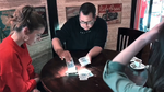 The deck is placed face down on the table next to the card case. No one (and this is true) knows where the spectator's card is in the deck.