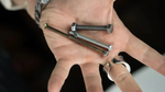 You then pinch one end of the bolt with your fingers. Without touching the nut at all, the nut starts to rotate on its own and eventually unscrews completely from the bolt.