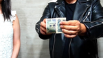 Ask a spectator to put a sticker on the borrowed bill and sign it.