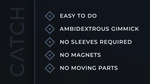 "Catch" can be used with either hand and works with all types of pocket change from a variety of different countries and currencies. You can even borrow or sign the coins. The gimmick is easy to use and doesn't have any fragile moving parts or magnets.