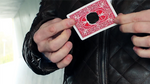 A card is selected from the deck, folded in half widthwise, and the center is torn out so an actual hole is created in the middle of the card.