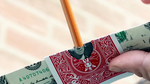 The bill can be clearly seen through the hole at all times throughout the routine. With a (borrowed) pen or pencil, you now stab right through the center of the bill! The pen is unmistakably punched right THROUGH the center of the borrowed bill and is clearly shown on both sides!
