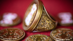Every year King Charles bestows upon one single member of the 52 the title of The Noble One and shows a recognition of the member being amongst the very best magicians alive. They are presented with a commemorative ring inspired by the mythical Noble One Ring. It is a ceremonial piece of fine art more for display than fashion and is presented in a velvet ring box. It is embossed with the emblem of The Noble 52. Unicorns signify nobility and magic. The geometric shapes of the Masons, the ever-present watchful eye of the Illuminati and the wheel of the Magic Circle can all be seen in the design.